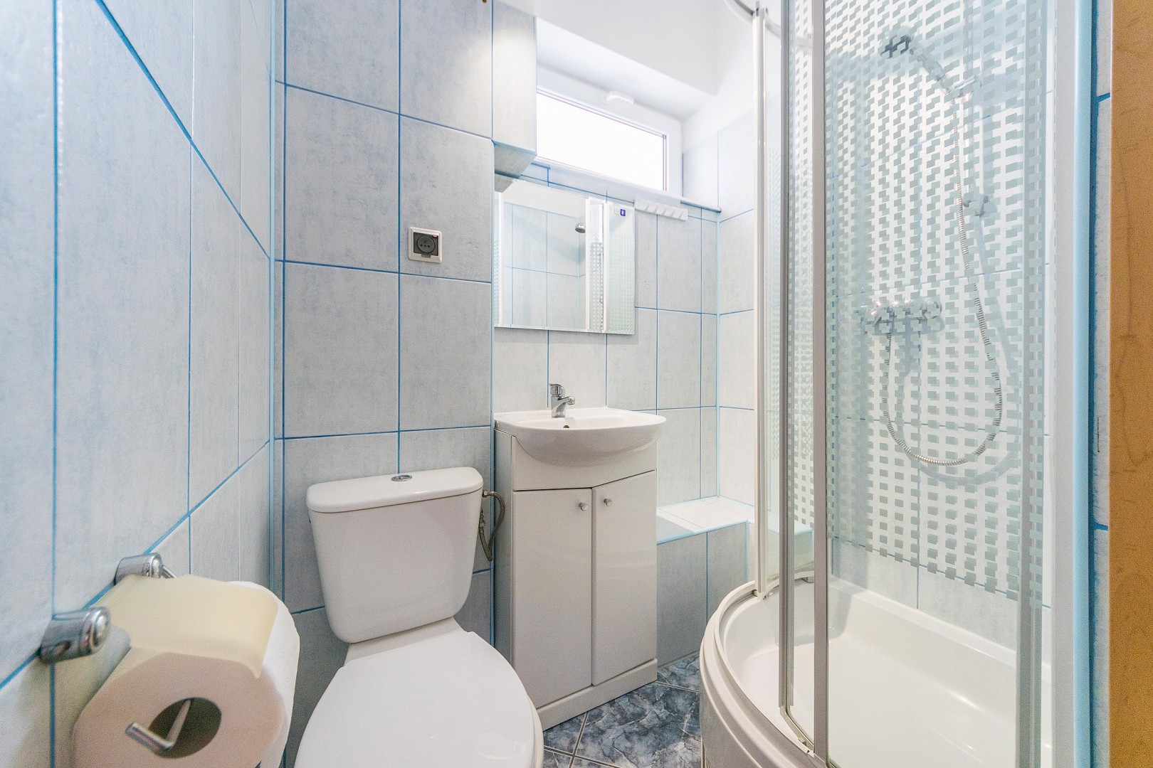 W Studiu Koralowym czeka na Ciebie aneks kuchenny wyposażony we wszystkie sprzęty, których możesz potrzebować - a także należąca do pokoju łazienka. Dostępne konfiguracje miejsc do spania to: trzy łóżka 1-osobowe lub duże łóżko małżeńskie plus łóżko 1-osobowe.